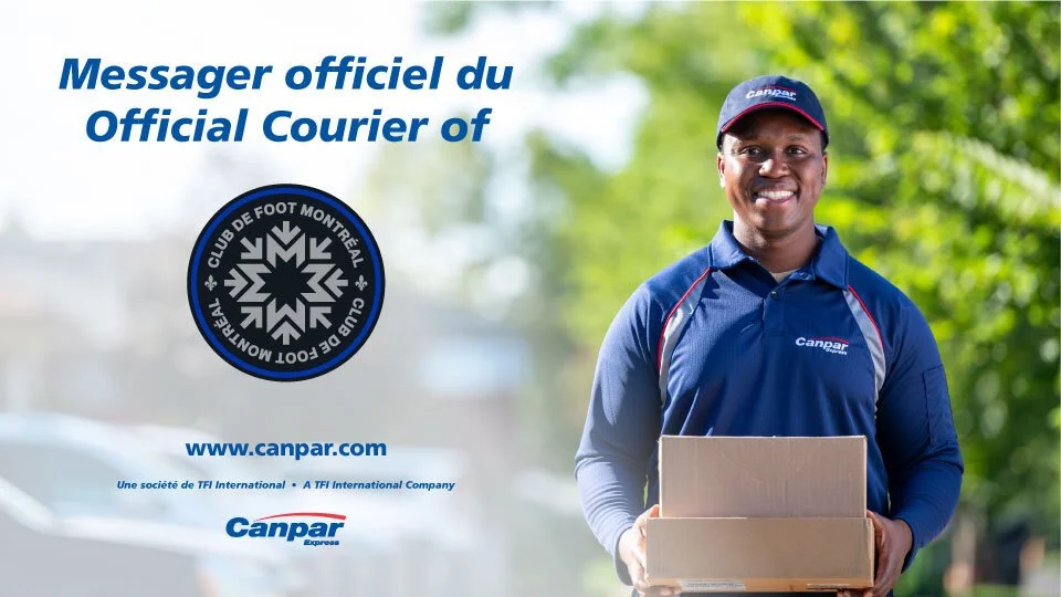 Developed for Canpar Express's collaboration with CF Montréal, this visual communicates the "Official Courier" status to a key audience. Its placement on Stade Saputo's concourse TVs ensures high visibility, effectively reaching thousands of soccer enthusiasts and cementing Canpar's presence within the sports community.